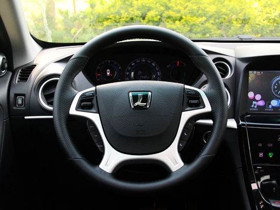 方向盤依舊功能豐富,各項多功能按鍵都有配置。方向盤經過真皮包裹,不過手感稍微偏硬。納智捷大7的內飾做工與合資品牌相當的水準,不過新車室內味道稍微偏大,剛提車時需要增加竹炭和開窗通風。儀表盤的設計較為立體,色彩豐富,閱讀也很清晰。