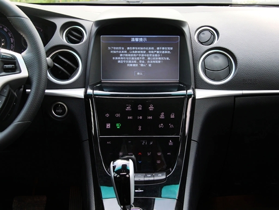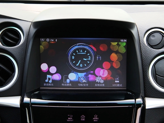 由于在臺灣與HTC的合作,中控臺中央的大尺寸液晶顯示屏界面很像HTC手機。整體色彩絢麗,操作界面很精致、觸摸操作的反映也很及時。從操作鍵上可以看到,本臺高配車型配置豐富,電動后尾門關閉等功能均有配備。