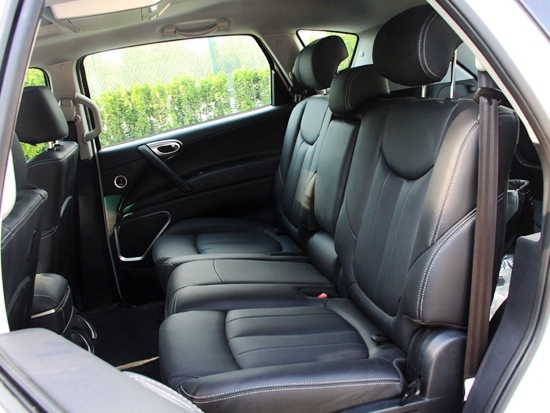 納智捷大7得益于充裕的軸距,內部空間較為寬敞。不過由于座椅厚實偏大,也是損失了一些空間。第二排座椅可以4/6分放倒,且坐墊翻起后呈現兩個較深的儲物格。后備箱空間縱深1130mm,高880mm,最寬處1150mm。