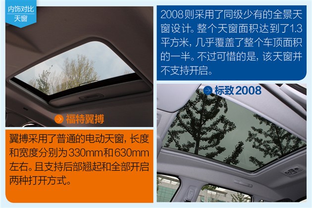 反觀翼搏,雖然天窗面積不如2008來得大,但是卻能支持開啟,更講究實用性。此外,雖然并未配備倒車影像,但當你切換倒擋時,顯示屏中同樣會出現模擬影像供駕駛員參考。我覺得其實這就足夠用了。