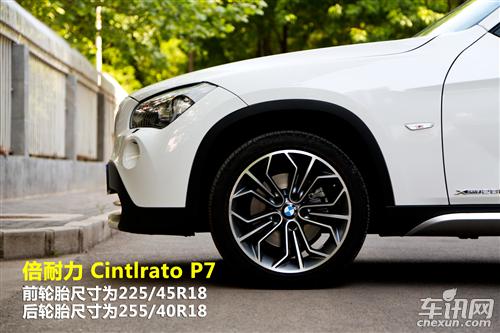 國產X1的轉向燈和進口車型一樣,并沒有集成到后視鏡上,而是安裝在車身側面。這款寶馬X1 xDrive28i使用了倍耐力P7防爆輪胎,其中前輪胎尺寸為225/45R18,后輪胎尺寸為255/40R18,這套五輻花瓣輪轂看起來力量感很強,xDrive車型采用鋁制車頂行李架,這套行李架更多的是裝飾作用。