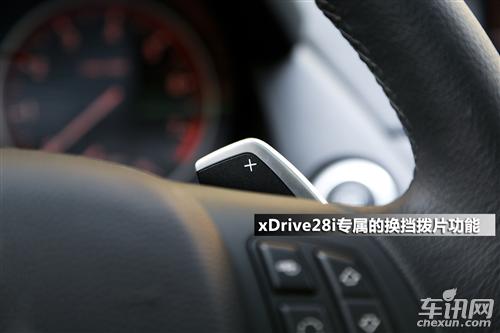 另外在方向盤后的撥桿上,還有定速巡航的按鍵,以及只有28i專屬的換擋撥片功能。