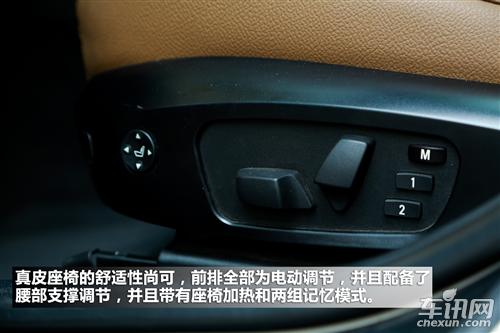由于軸距沒有太大變化,所以在前后排的空間方面,寶馬X1和進口車型并沒有太大區別,比普通A級車空間略微寬敞一些。不過由于四驅系統的存在,所以后排地板中央有一個突起,可能會給中間乘客造成乘坐方面的不適。真皮座椅的舒適性尚可,前排全部為電動調節,并且配備了腰部支撐調節,并且帶有座椅加熱和兩組記憶模式。