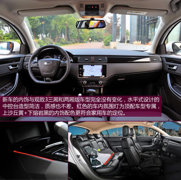 與外觀相同的是,這款新車的內飾設計與觀致3的其他車型并沒有什么區別,簡潔的中控設計搭配軟質材料制造的中控臺不僅提升了車輛的檔次感,同時也給車內乘客帶來更好的乘坐感受。以黑色為主基調的中控臺內還隱藏有紅色的LED氛圍燈,起到了不錯的點綴作用。