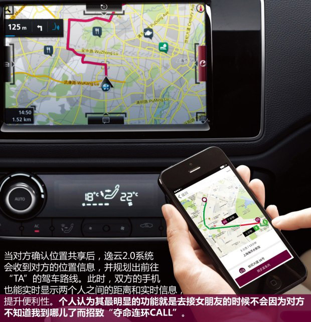 觀致逸云2.0全新的手機界面顯示清晰,新增的兩個功能也更能迎合時下年輕人的口味,尤其是新系統上即將搭載的去接“TA”功能,相信對于手機不離手的80后90后們有很強的吸引力,同時對于其他品牌如何提供更為方便、人性化的智能互聯系統提供了參考。