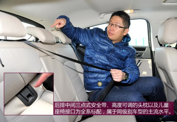 乘坐空間方面,身高186cm的體驗者進入前排,并將座椅調到最低后,頭部空間約為2指。而此時當體驗者進入后排后,頭部和腿部空間分別為3指和1拳+3指,空間算得上是比較寬敞的。后排中間頭枕、三點式安全帶以及2組兒童座椅接口對于這個價位的車來說基本上是標配,觀致3都市SUV也不例外。