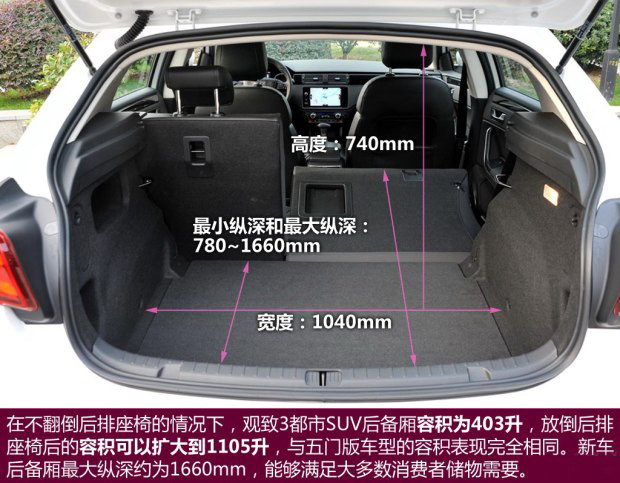 ● 儲物空間和天窗:后備廂容積403-1105升。