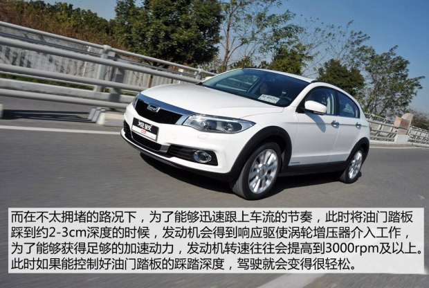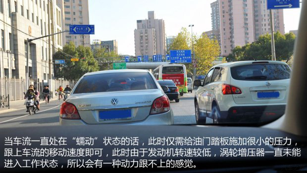 據觀致工程人員透露,在變速箱做低速工況的邏輯設計時他們做了如下考慮,他們將油門踏板的行程分為緩慢加速、標準加速和全力加速三段。輕點油門便是緩慢加速,此時車輛所面對的路況是前方車流一直處于“緩慢蠕動”狀態,整個車流的加減速節奏都非常緩慢,此時發動機轉速一般不會高于1500rpm,渦輪增壓器不會進入全力工作狀態,只要保證車輛能夠跟上車流“蠕動”的節奏即可。
