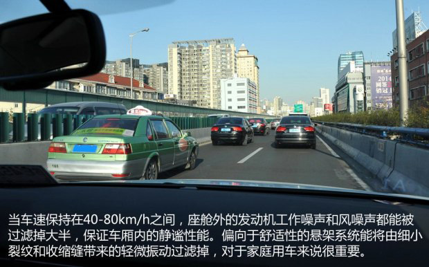 隨著試駕車駛入城市主干道,車速保持在40-50km/h左右,比觀致3三廂版/兩廂版轎車調校得更舒適的減振系統優勢便體現了出來,諸如細微的橫向路面裂紋以及收縮縫等細小振動都能被減振系統過濾掉。與此同時,發動機和渦輪增壓器工作的的噪音被控制在了較低的水平,而當車速提升到60-80km/h之間,風噪聲逐漸蓋過了發動機艙內噪聲,不過車廂內的靜謐性能依然不差,作為一款主打家庭用的緊湊型車來說,這樣的表現還是值得肯定的。