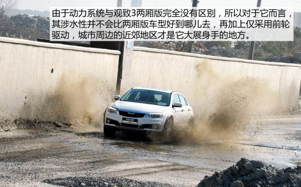 至于涉水性能,官方目前并未提供明確的答復。但是考慮到這款車仍然來源于普通的觀致3兩廂版,動力系統并沒有進行特別的改進。而且,僅采用前輪驅動和配備普通公路輪胎的都市SUV在面對附著力極低的情況下(泥地或雪地等)也無法提供足夠的驅動力保障。所以,荒郊野嶺什么的,還是交給那些裝備有差速鎖的硬派越野車吧。