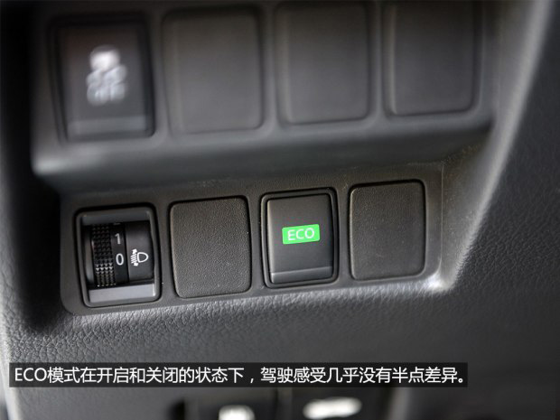 為了保證舒適性和燃油經濟性,這臺奇駿在巡航模式下都會將轉速保持在1500rpm以下。當需要加速時,它的轉速會根據油門踏板的深度迅速提升至合理的區間。比如在急加速超車時,它的轉速會拉到3500rpm,甚至4000rpm,因為此時的扭矩更強。值得注意的是,在中控臺最左側的位置還藏有一個ECO按鍵,按下之后,行車電腦會顯示已選擇ECO模式。不過在對比試駕之后,我發現開啟和關閉ECO模式根本沒有區別,至少對于駕駛沒有任何影響。