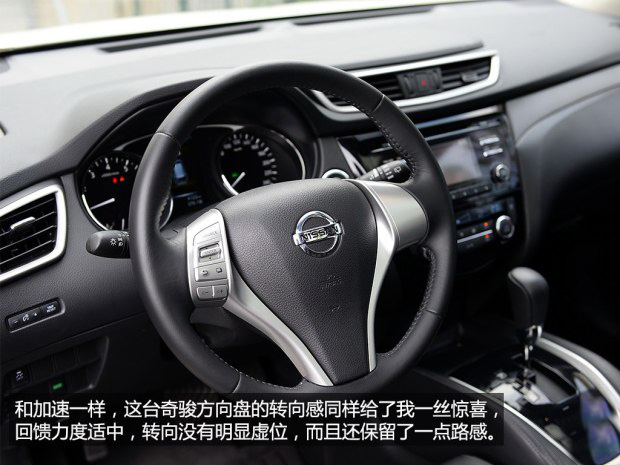 說實話,這款奇駿的噪音真是有點超乎我的預期了。怠速情況下,發動機聲能夠較為明顯地傳入車內。而當速度達到60km/h時,胎噪開始變得明顯,或許換個輪胎會好些。高速情況下,風噪又會不可避免的傳入車內。總而言之,奇駿的隔音降噪還有待加強。