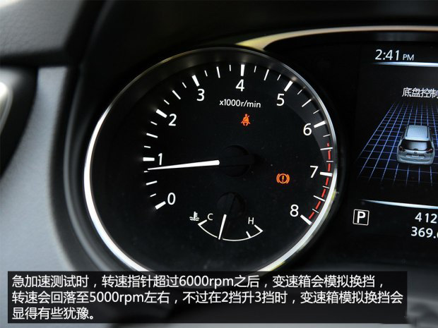 除了發動機,這臺變速箱的表現也堪稱出色。一直以來,CVT變速箱的優點是平順和省油,而缺點就是幾乎沒有任何駕駛樂趣,深踩油門時,轉速會一直保持在較高的轉速,發動機一直用高亢的聲音等待著車速的逐步提升,這種完全不換擋的方式會讓人覺得非常無聊。然而現在我們看到,大多數CVT變速箱都加入了模擬換擋功能,這是一項進步,但目前日產的CVT變速箱在模擬換擋方面給我的感覺是最接近AT變速箱的。