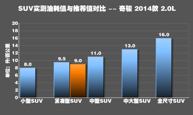 對于一款緊湊型SUV來說,9.0L/100km的油耗算是比較優秀的水平。整個測試階段,我駕駛這輛奇駿經歷了一段長達4個小時的擁堵路段以及2個小時的環路和高速等暢通路段,最終平均時速29km/h,全程開空調的情況下能跑出這個成績,也是我之前沒有想到的。