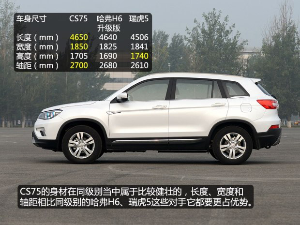 CS75在車型尺寸方面,與同級別的對手相比毫不遜色,而且在視覺上,CS75的身材給人感覺相當(dāng)健碩,就如同一個鍛煉多年的肌肉男。相信這樣的視覺感受,也是很多人喜歡它的主要原因之一。