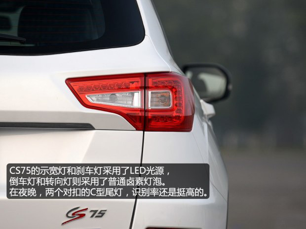 CS75高挑的車尾顯得很厚實、很有安全感,硬朗、緊繃的感覺和車頭的風(fēng)格相呼應(yīng)。它的后包圍采用了黑色塑料,并沒有噴涂成與車身相同的顏色,對于這樣的設(shè)計,既讓車身顯得更有原始感,也避免了我們?nèi)粘暮髠鋷锬萌∥锲窌r劃傷車漆。