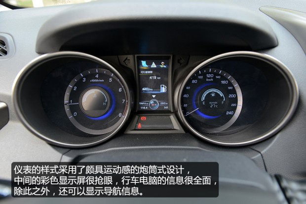 雙炮筒式的儀表盤很有運動色彩,儀表中央的彩色顯示屏可以顯示續(xù)航里程、綜合油耗、平均車速以及胎壓信息等內(nèi)容。