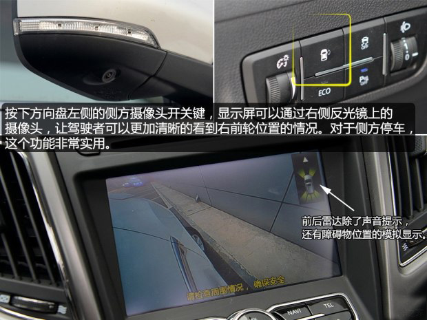 配置方面,我們測試的這輛手動領(lǐng)先型不僅配備了倒車影像、還帶有側(cè)方攝像頭,在側(cè)方停車的時候非常方便,可以讓駕駛者輕松的了解到右前方下面的情況。方向盤左側(cè)的除了側(cè)方攝像頭的開啟按鍵,還有ECO模式控制鍵,開啟ECO模式也就是開啟了發(fā)動機啟停功能,對于油門的反應(yīng)等方面并沒有明顯的變化。