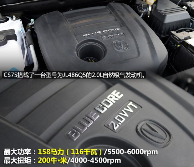 動力方面,CS75搭載了一臺2.0L自然吸氣發(fā)動機,最大功率158馬力(116千瓦)/5500-6000rpm,最大扭矩200牛·米/4000-4500rpm。與這臺發(fā)動機匹配的是一臺6速手動變速箱,比較遺憾的是,2.0L車型目前為止還沒有自動擋車型,要想購買自動擋車型的消費者,只能選擇1.8T車型了,在選擇范圍上還存在著一定的局限性。
