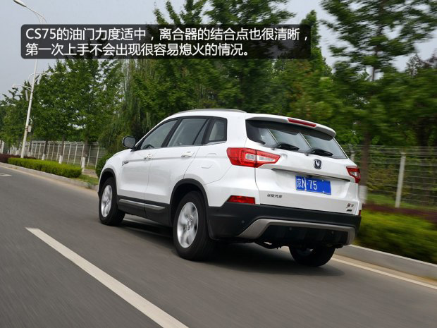CS75的油門反應(yīng)不屬于特別敏感的類型,反應(yīng)適中,油門踏板的力度很輕松,離合器踏板的結(jié)合點比較清晰,配合6速手動變速箱,很容易上手,初步感受的印象相當(dāng)不錯。