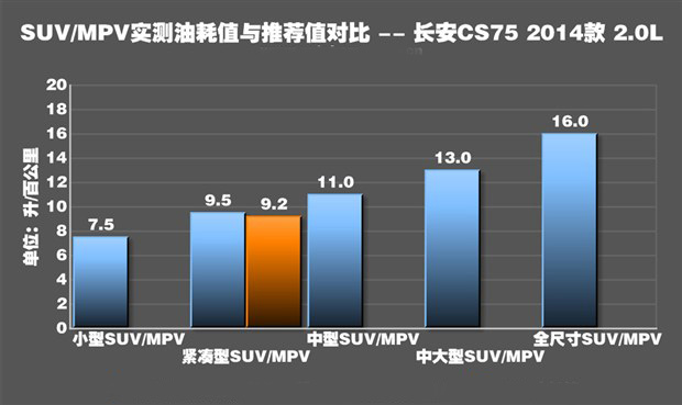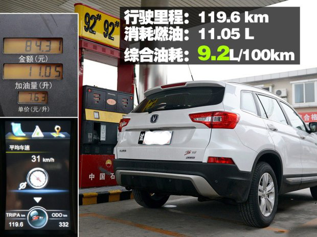 測試油耗環(huán)節(jié),全程開啟空調(diào),共行駛了119.6公里,平均時速31km/h,最終CS75 2.0L手動擋車型的油耗成績?yōu)?.2L/100km。它的油耗成績略低于我們的推薦值,并且對于這樣一款體型健碩的SUV來說,這個“飯量”完全可以接受了。