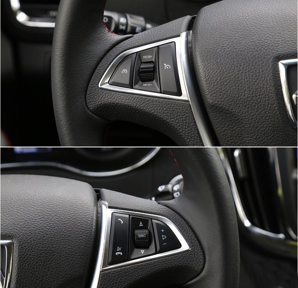 圖中材質的方向盤是頂配專屬,方向盤上定速巡航、藍牙電話功能也是低配車型未能染指,試駕車輛甚至配備了前駐車雷達,可以說高配車型有不少作為目前車系旗艦的象征。作為平衡,車身穩定系統全系標配,且中、高配車型配備8英寸液晶屏,功能分區采用大方格設計并以中文標識,易于上手且減少了操作失誤。