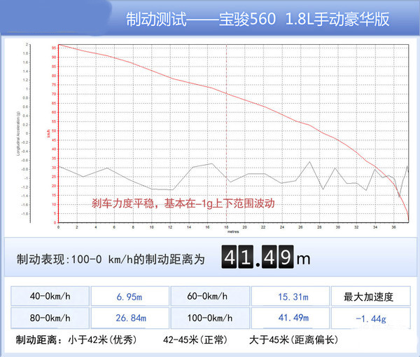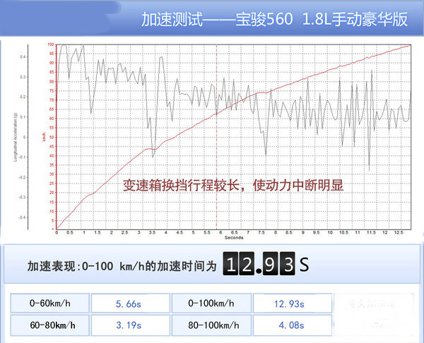 相信寶駿560準車主們不會在意加速數據,確實,成績如何并不重要,但您可以通過反復加速/剎車測試,去得出一些有關可靠性方面的結論。如預想中,百公里加速并非560強項,雖然初段力道很猛,但轉速攀升越高動力輸出也就越平庸。