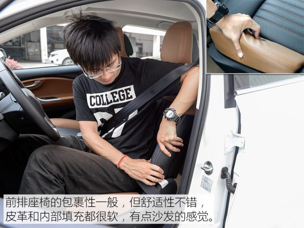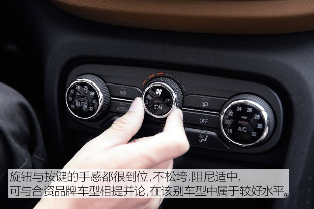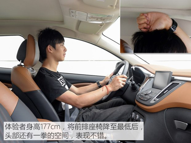 東南DX7的方向盤不能前后調節(jié),這也是同價位中國品牌車型一個老生常談的問題了。身高177cm的體驗者將座椅降至最低后頭部還有一拳的空間,表現(xiàn)不錯。只是手臂伸得太直,有種夠著方向盤開車的感覺。