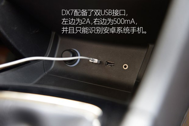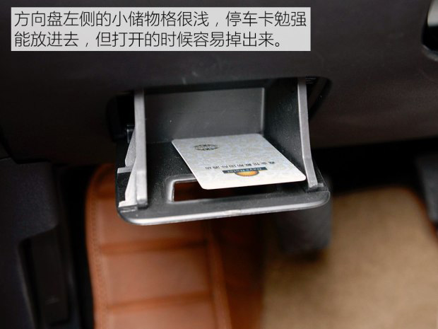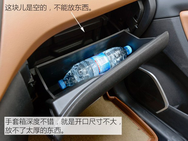 東南DX7車內的儲物空間不少,位置設計也挺合適,就是用著不太順手。比如中控臺下方的儲物格造型不規(guī)整,差一點就能放進iPhone 6 Plus了;左側的小儲物格本來是放停車卡的,但是深度不夠,打開之后停車卡很容易掉出來,在這樣的細節(jié)上還有很大的進步空間。