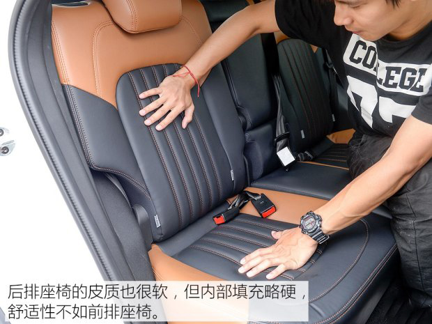 后排空間是東南DX7整車的一大亮點,無論頭部還是腿部空間都很充裕,絲毫不會覺得擠。中間位置的舒適性也不錯,靠背不硬,腳下空間也足夠,整體表現(xiàn)在同價位車型中位列中上等。
