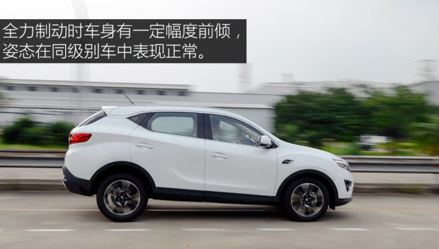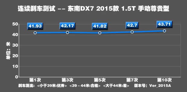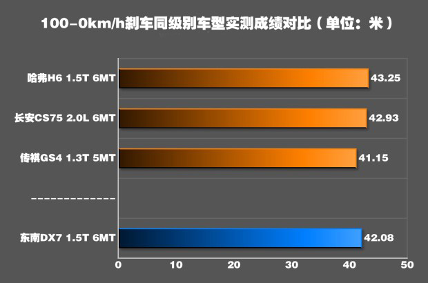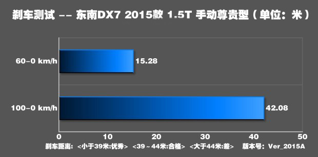 東南DX7的剎車姿態(tài)還不錯,懸架的拉伸和壓縮被控制在一個合理的范圍內。制動力度比較平穩(wěn),就是強度不夠,輪胎的抓地力也有所欠缺,ABS介入時會有明顯彈腳的感覺。42.08米的剎車成績無驚喜也不失望。