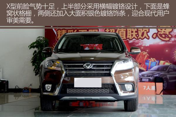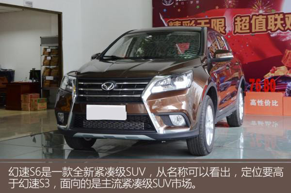 由于定位更高,幻速S6外形要比S3更加大氣,給人感覺也要高級不少。X型前臉氣勢十足,上面是橫幅鍍鉻設計,下部是蜂窩狀格柵,兩側還融入大面積銀色鍍鉻飾條,迎合現代用戶審美需要。