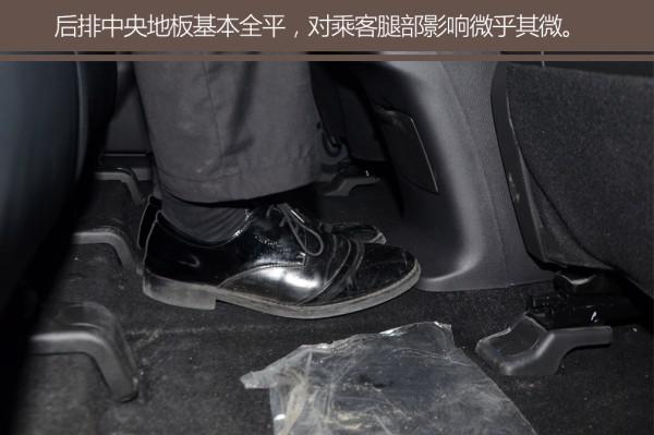 到后排,由于車頂向上凹了許多,所以頭部空間非常寬敞,保持了一拳兩指的距離,同級別中很有優勢。而腿部空間也有接近三拳的距離,整車乘坐空間與同級別相比毫不吃虧。