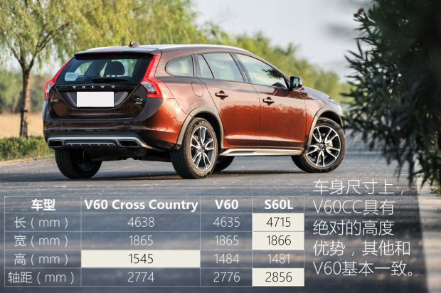 沃爾沃V60CC和家族中的兄弟車型相比,由于軸距并沒有加長,所以除了車身高度之外,其他方面并沒有什么優勢,所以看重空間的朋友要斟酌一下,V60CC的空間表現和V60是完全一樣的。此外,V60CC的最大優勢在于較高的比V60更大的接近角和離去角,當然這取決于其同樣超出常規轎車許多的離地間隙,要知道這款車的離地間隙甚至超過了GLK和Q5這兩臺正兒八經的SUV。
