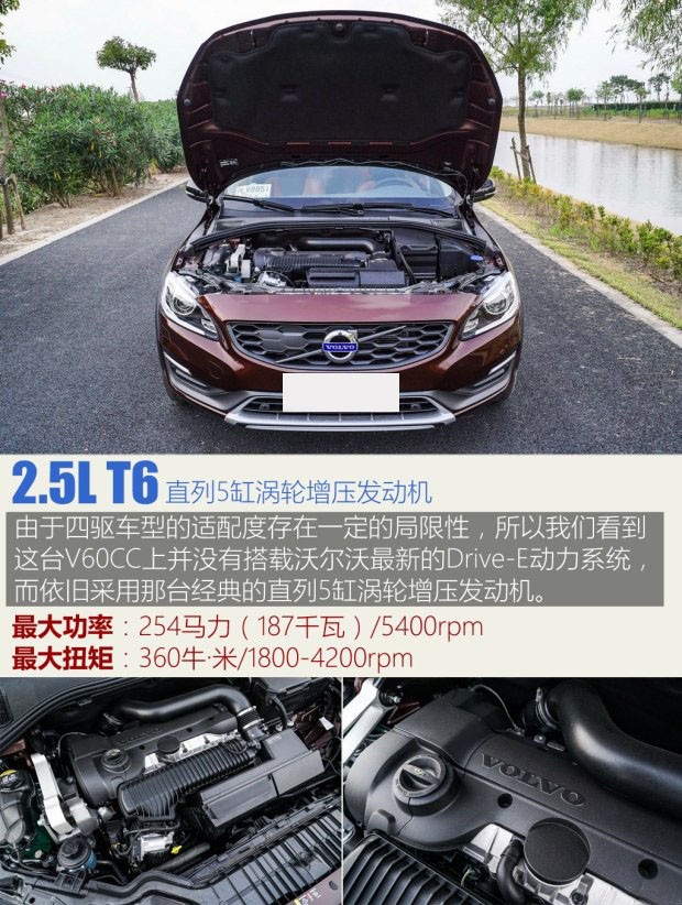 發動機的話題性就更大了,這臺V60CC因為配備了AWD四驅系統,所以在發動機的匹配上存在一定的局限性,換言之它無法搭載最新的Drive-E系列發動機,仍然只能采用那臺老舊的2.5T直列五缸產品,最大功率254馬力,最大扭矩360?!っ祝脕砗退ヅ涞倪€是那臺愛信的6速手自一體變速箱。而目前國內在售的沃爾沃產品中,僅有XC90是同時搭載了AWD四驅系統和Drive-E發動機的,個中原因我們還在向廠家進行咨詢。