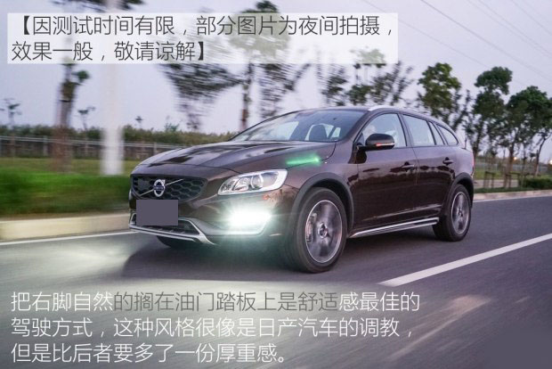 深踩油門,“呼嚕”聲不斷加大,但其后的聲浪大小取決于駕駛者的狀態,很慶幸的是,發動機的明顯振動僅在低速時發生,所以車速提升之后V60CC依舊是那個順滑靜謐的沃爾沃。我喜歡用最舒服的方法去駕馭這臺車,把右腳很自然的擱在油門踏板上就是最好的力度了,這點和日產汽車的駕駛感覺很像,只不過身處的這臺沃爾沃給予了更多的厚重感。