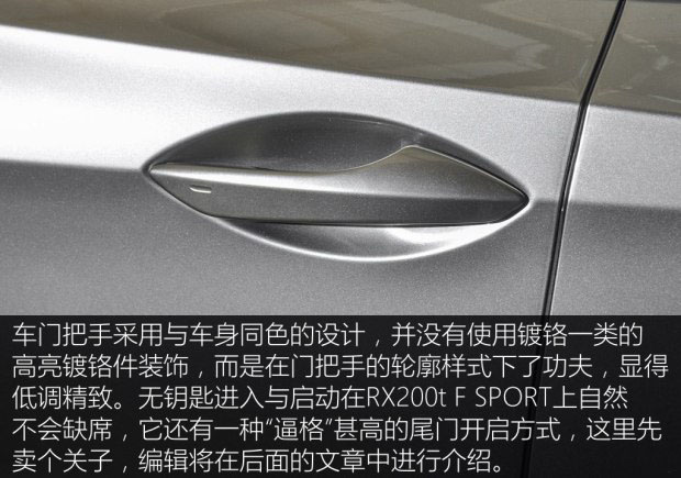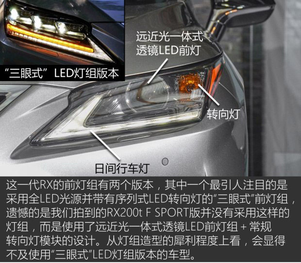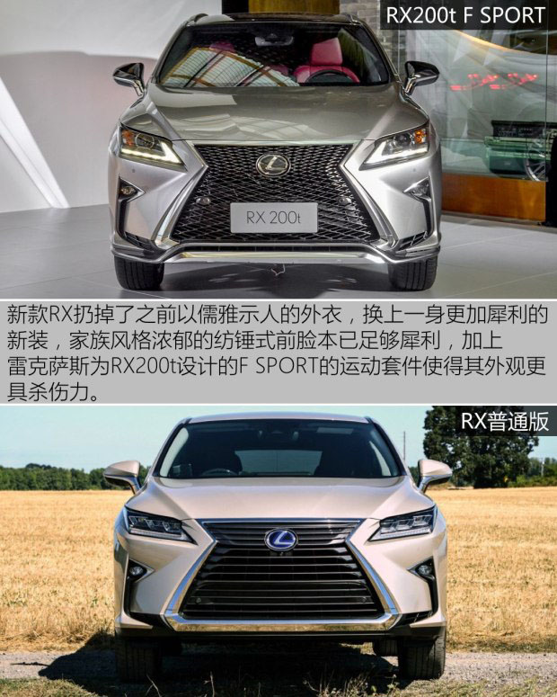 雷克薩斯RX發(fā)展至今已經是第四代車型了,自其1998年上市以來,可以統(tǒng)計到的數據表明在全球范圍內RX車系的銷量超過210萬臺。因此,RX這一產品在雷克薩斯產品序列中起到了舉足輕重的作用。而在中國市場,雷克薩斯同老牌的豪華品牌如奔馳、寶馬之間的競爭也越來越直接,現在全新一代的RX以中大型SUV的角色殺入市場,使得消費者們在傳統(tǒng)中大型豪華SUV以外有了更多一種的選擇。近日我們有機會拍到了雷克薩斯RX200t的F SPORT版本車型,其與RX系列中的普通版車型有許多不同,下面就來一起看看吧。