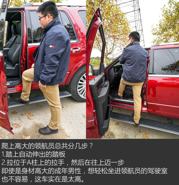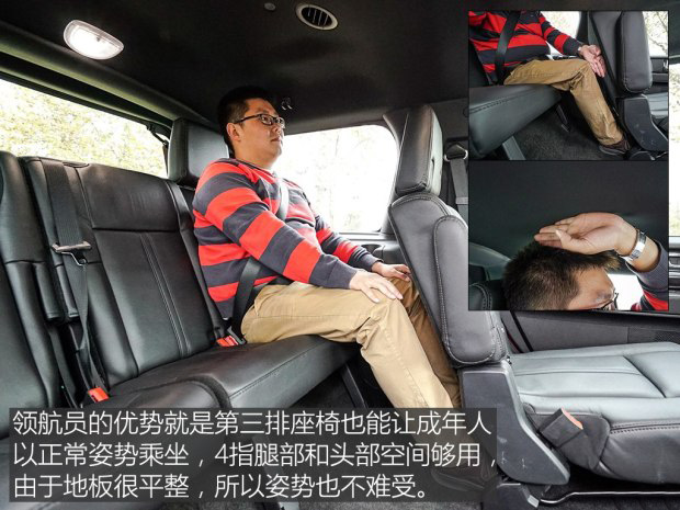 領航員有什么特點?首先它非常的大,這就帶來一個好處,能夠讓三排乘客均擁有舒適的乘坐空間,就像MPV一樣,但與MPV不同,領航員作為一輛SUV,一輛有著非承載式車身的SUV,它具備更好的通過性能。而與對手相比,領航員由于后懸架采用雙叉臂形式,所以第三排地板更平整,這是LX570和凱雷德這種采用整體橋活軸結構的車型所做不到的。講完了這些,下面我們將進入正題,去感受這輛純正美式風格的大7座SUV。