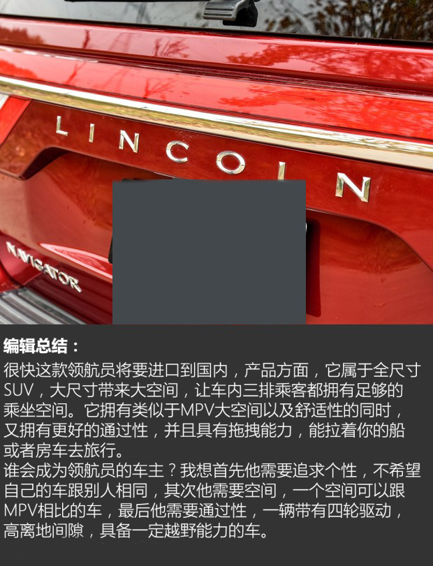 近兩年,林肯在中國動作頗多,希望能夠取得突破,所以在引進了MKZ以及MKC之后,又在前不久迅速推出MKX,而就在MKX上市之后,我們深度體驗了這款即將要引進中國的領航員,一款林肯家族中尺寸最大,價格最高的旗艦產品。