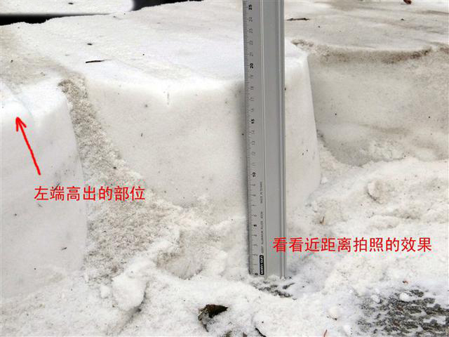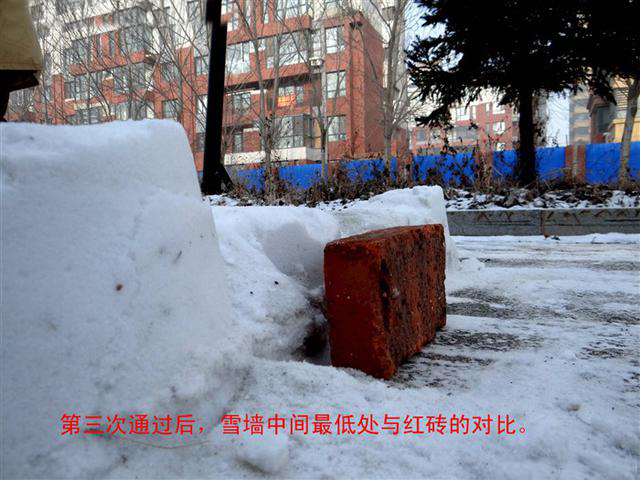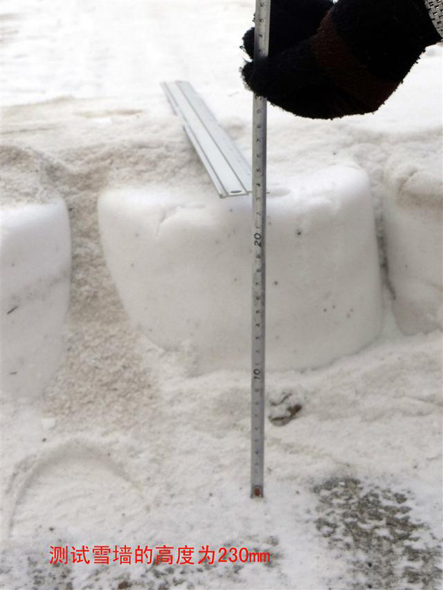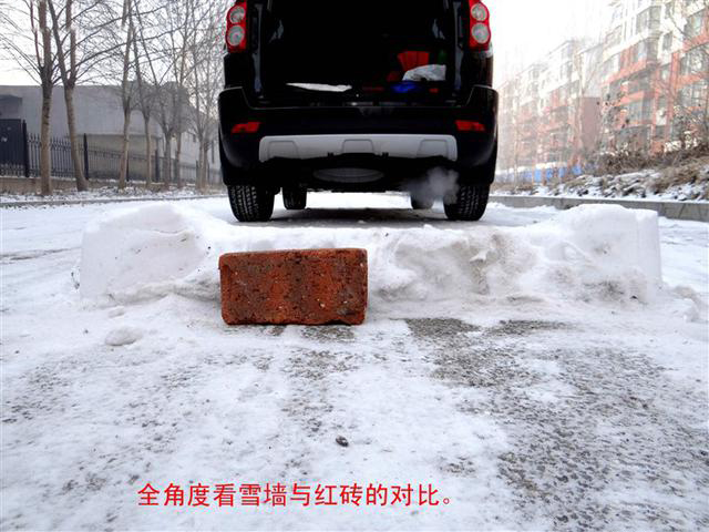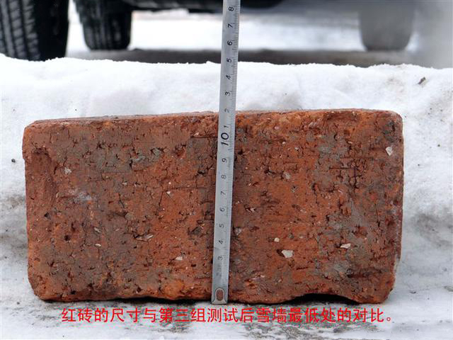 放一塊常見的紅磚與雪墻最低處進行對比,能方便大家對測試數據的感性理解。