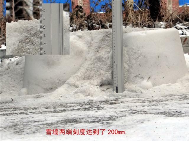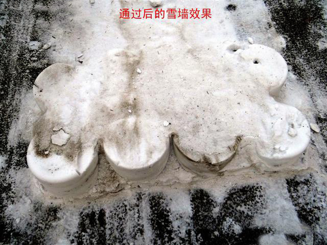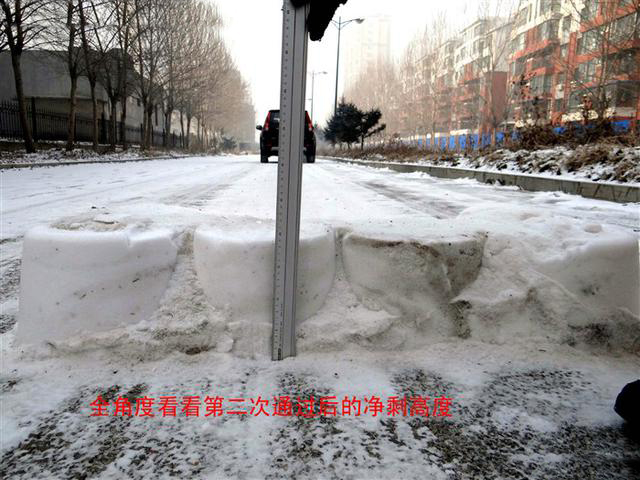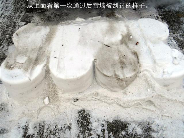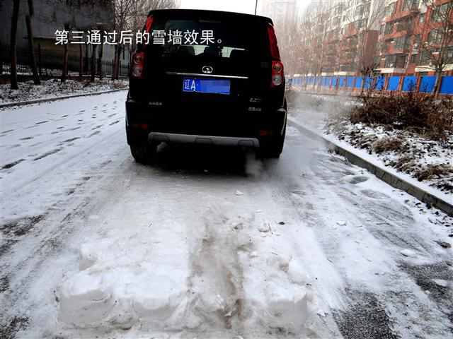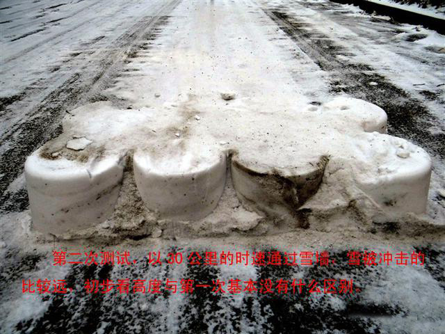 車輛經過后,雪墻被沖擊的明顯低于前兩次。