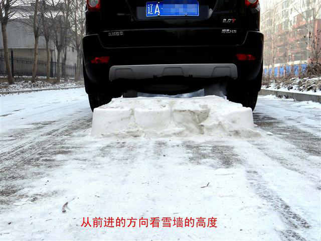 第二組測試:乘員2 名,以30km的時速勻速通過雪墻,測試車輛動態情況下的最小離地間隙。