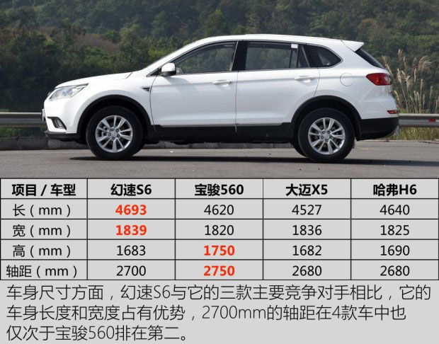 根據(jù)汽車(chē)之家對(duì)比統(tǒng)計(jì)數(shù)據(jù)分析,關(guān)注幻速S6這款車(chē)型的網(wǎng)友們大多將它和寶駿560、大邁X5或是哈弗H6、長(zhǎng)安CS75等車(chē)型做比較。其中,與哈弗H6、長(zhǎng)安CS75相比,幻速S6的品牌知名度還存在一定的差距,不過(guò)幻速S6的競(jìng)爭(zhēng)優(yōu)勢(shì)在于售價(jià)相對(duì)較低,且配置豐富(哈弗H6起售價(jià)9.68萬(wàn);長(zhǎng)安CS75為9.98萬(wàn))。