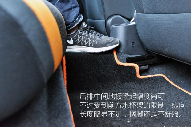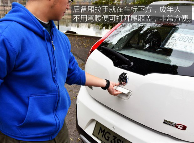 身高176cm的體驗者坐入MG 3SW的前排后,其頭部空間約為1拳,算得上是比較富裕的。不過當他坐入后排后,頭部和腿部空間均只剩下了3指,一下子變得局促了不少。MG 3SW中間地板微微隆起,幅度不大,不過受到前方水杯架的影響,縱深不夠,擱腳依然不方便。