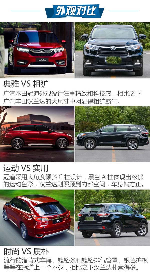 外觀設(shè)計(jì):冠道注重設(shè)計(jì)感/漢蘭達(dá)粗獷穩(wěn)重