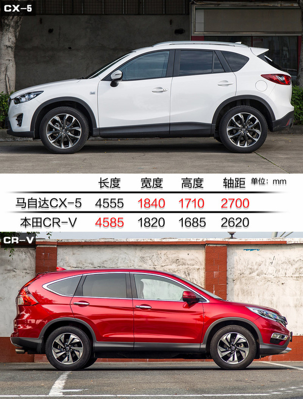 | 車型 | 馬自達CX-5 2015款 2.5L 自動四驅旗艦型 | 本田CR-V 2015款 2.4L 四驅尊貴版 |