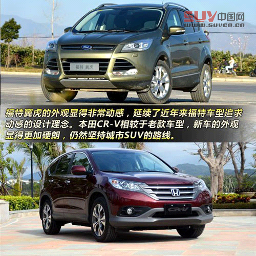 福特翼虎的外觀顯得非常動感,延續了近年來福特車型追求動感的設計理念,看上去就像是加高了的福克斯,而且設計細節也精打細算,可以說這個造型設計非常成功。本田CR-V現款車型是剛剛經歷了換代,相較于老款車型,新車的外觀顯得更加硬朗,但它并沒有試圖顯得多有運動氣息或野性的感覺,它仍然堅持城市SUV的路線,從設計語言上顯得更加外擴,使得整車顯得更寬大飽滿。