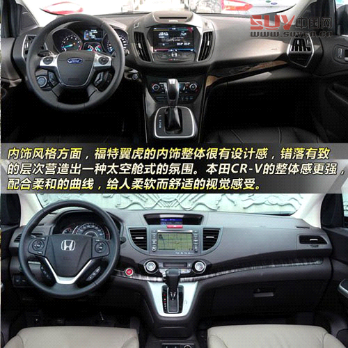經過對比我們發現,福特翼虎雖然我們沒有選擇頂配車型,但在不考慮多項高科技配置的情況下,它的配置水平仍然要高于本田CR-V,而且材質和用料方面也更足,但美系車的福特翼虎雖然相較于老款的福特品牌車型,做工上有了長足的進步,但相比以細致著稱的日系車時,還是顯得有差距,本田CR-V尤其在內飾做工細膩程度方面仍然占據優勢。
