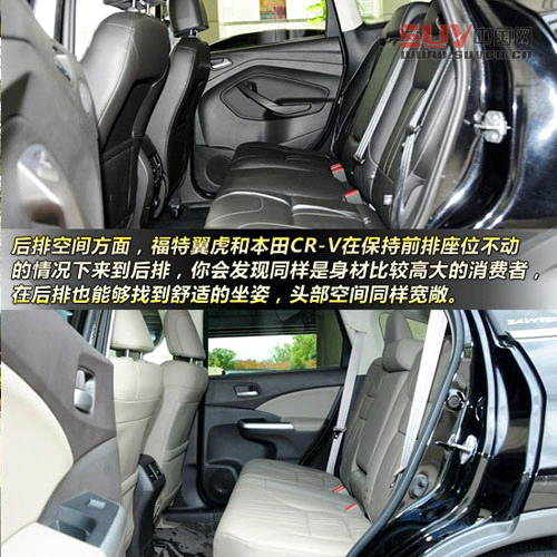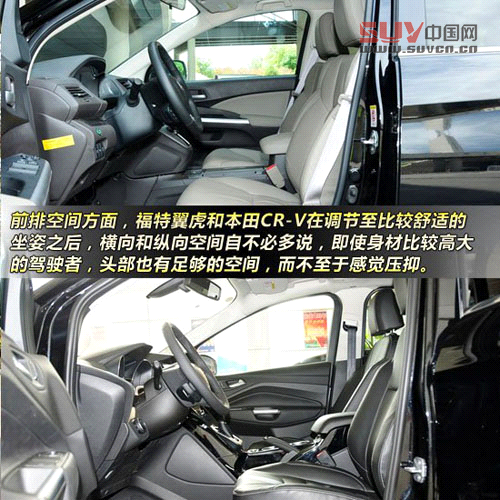 前排空間方面,福特翼虎和本田CR-V在調節至比較舒適的坐姿之后,橫向和縱向空間自不必多說,即使身材比較高大的駕駛者,頭部也有足夠的空間,而不至于感覺壓抑。