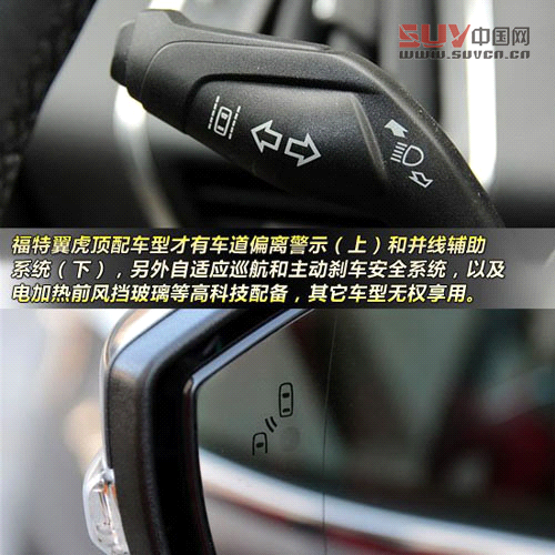 另外不得不提到的是一些高科技配置,福特翼虎雖然在我們選擇的這款運動型車上沒有配備,但在更高一級的頂配車型上,還配備了自適應式巡航,和因此帶來的主動剎車安全系統,另外車道偏離警示和并線輔助系統,也都是對行車安全頗有裨益的功能,還有電加熱前風擋,對北方下雪地區的車主來說尤為實用。當然,我們還是希望這些高科技配置不要僅僅放在頂配車上,不能夠讓全系多款車都受益的配置,消費者會習慣性想到那是用來宣傳的,而不是真正想給人用的。